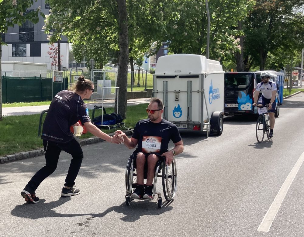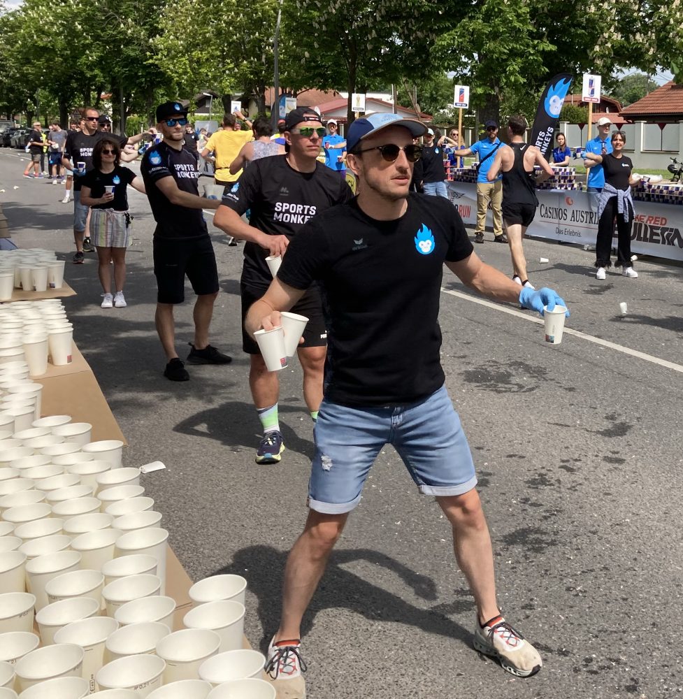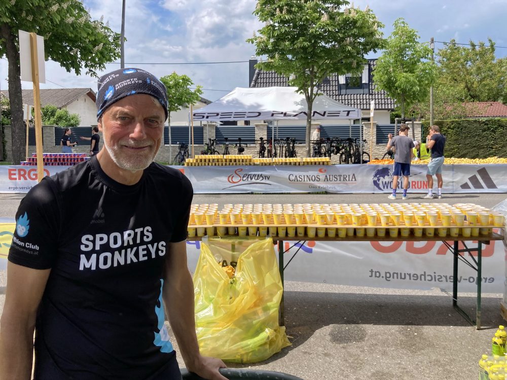 Über 35 Affen machten diese Labestation bei Km 19 in Wien in Abstimmung mit dem World Run Team zum vollen Erfolg. Viele Promis zogen an uns vorbei, noch interessanter die vielen Rollstuhlfahrer, die an diesem warmen Sonntag die Schleife durch Wien zogen. Aber seht selbst: Hier einige Fotos von unserem „Seitenwechsel“ auf die andere Seite der Labe!