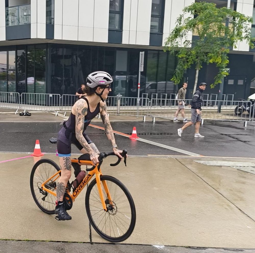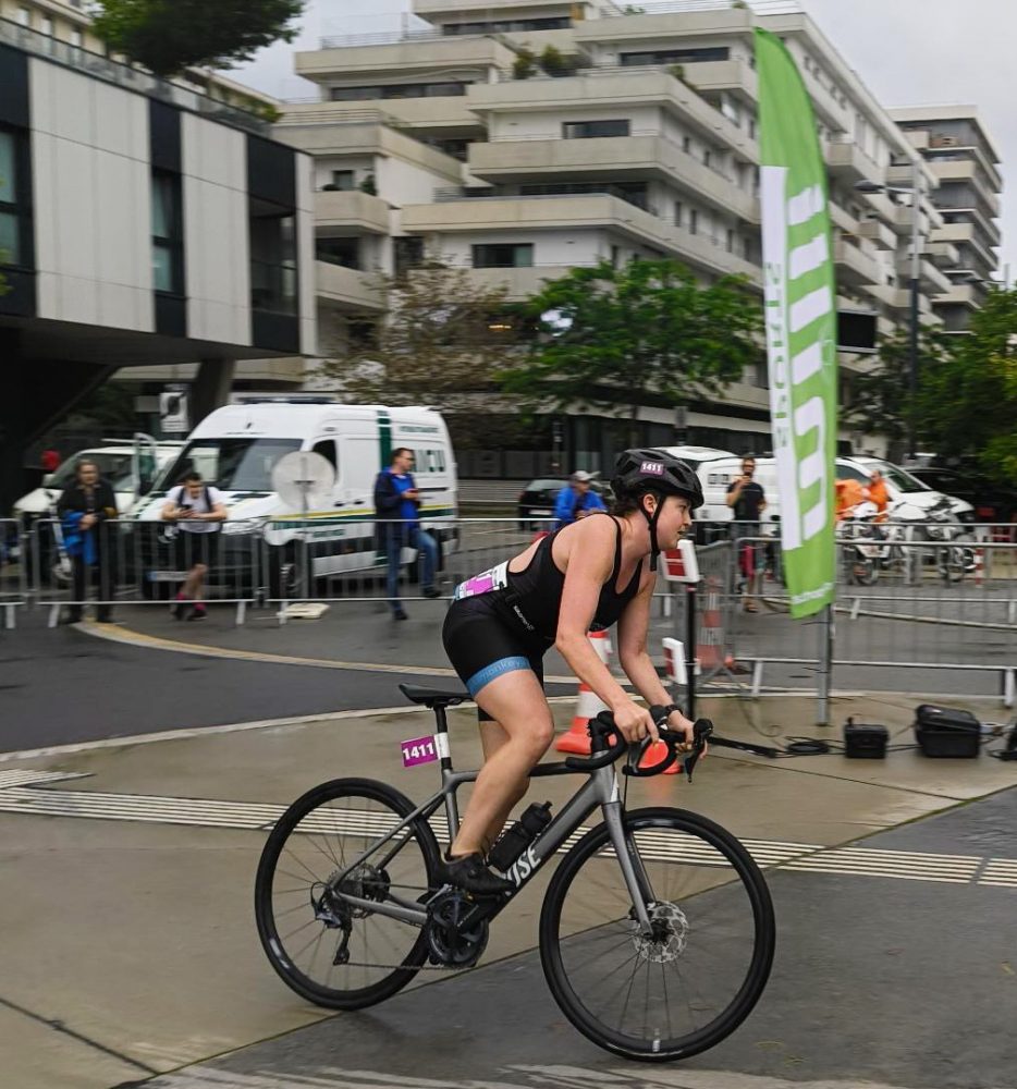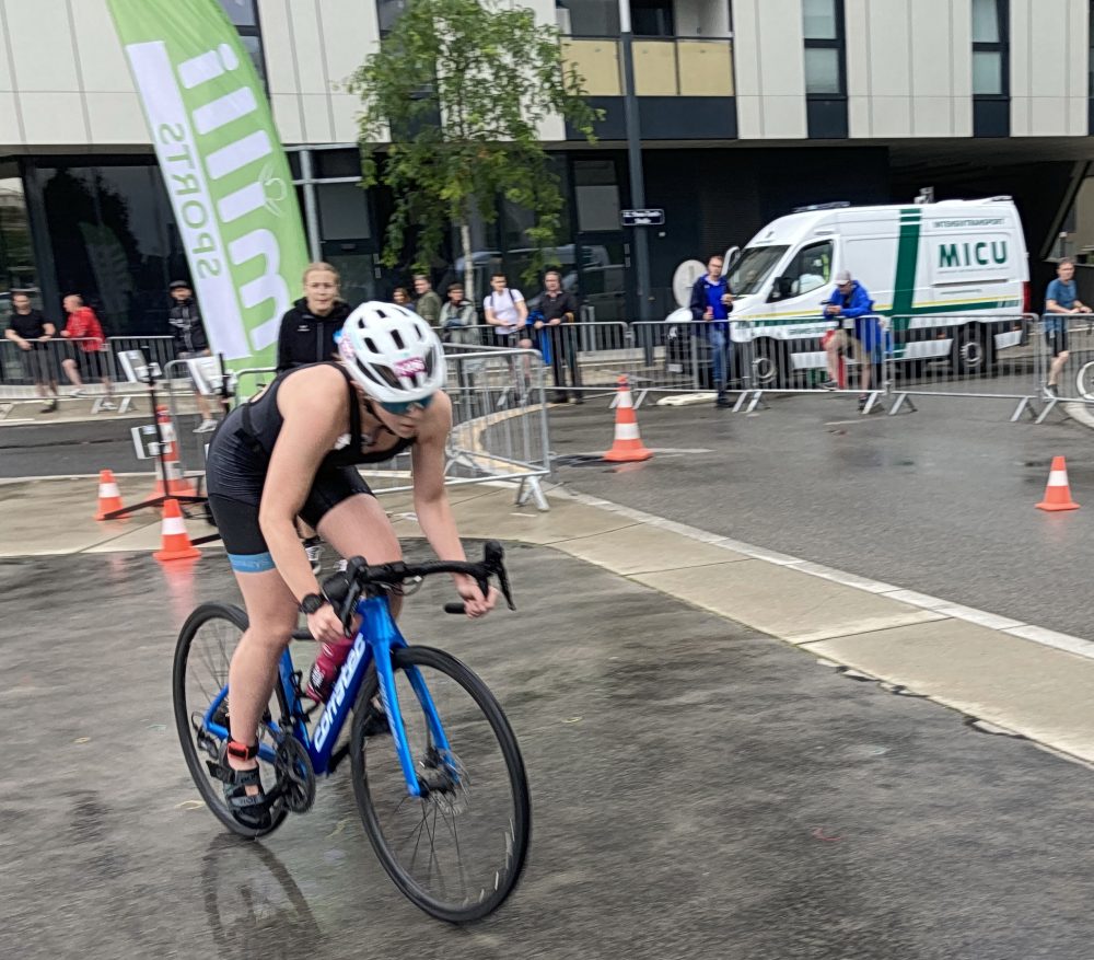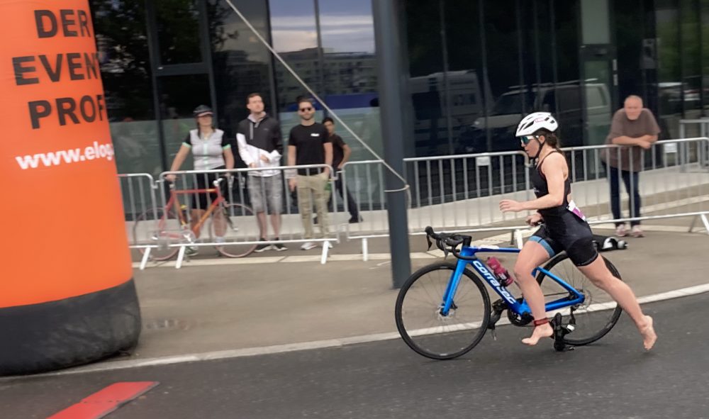 Dritte in diesem Regenrennen Anna Reiter Kocher vom Sports Monkeys Triathlon Club.