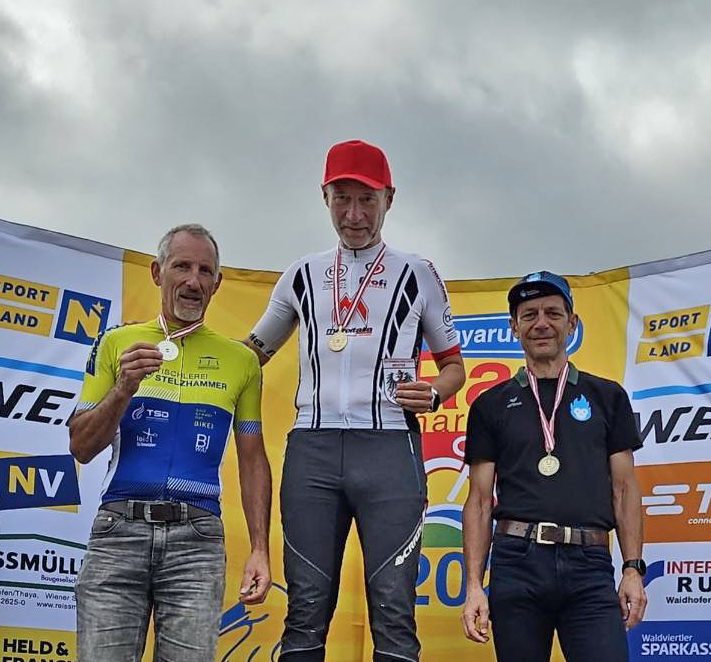 Österreichische Meisterschaft-Radmarathon in Waidhofen an der Thaya wurden die ÖMS ausgetragen. Auf den 100 Kilometern mit 1200 Höhenmetern verfeinert, trotz technischem Defekt, sicherte sich Alex Hohenecker in 2:42:24/36,72km/h Schnitt, den dritten Platz in der AK M55 und trägt damit unseren Vereinsnamen Richtung Radsport!