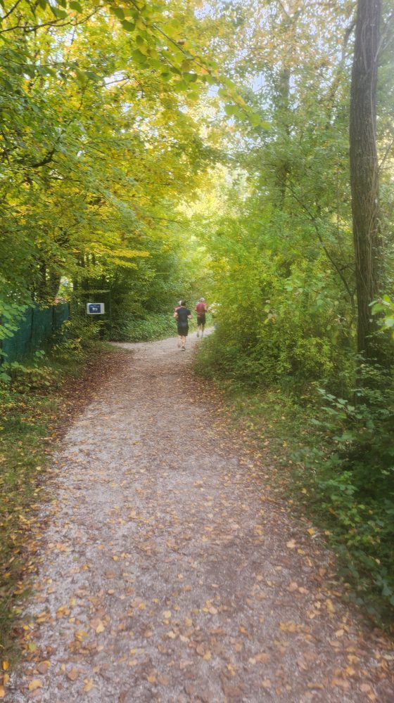 Nach der 6. Runde, ich sitze auf einer Bank und blicke auf den in der Herbstsonne liegenden See, realisiere ich, dass wir bereits seit 6 Stunden unterwegs sind. Die ersten 40 km vergingen wie im Flug, unvorstellbar wenn man bedenkt, wie sich eine 10 km-Einheit manchmal ziehen kann.