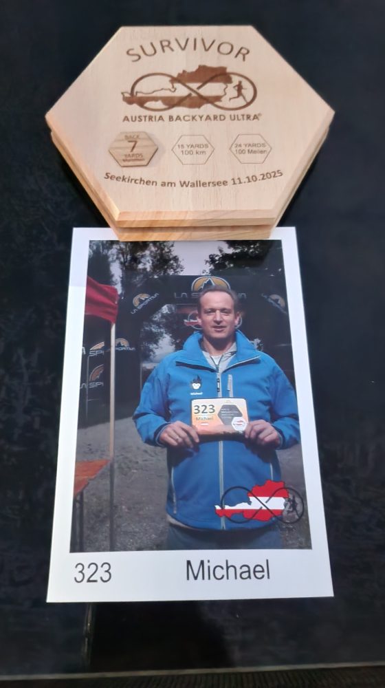 Oktober 2025: Mein erster Backyard Ultra in Seekirchen am Wallersee steht am Plan. Einerseits will ich das Format ausprobieren, andererseits soll er als Vorbereitung auf die halbe G’schicht beim Wien Rundumadum (WRU) dienen. Ziel: 8 Runden (53,6 km). Nach dem Wachaumarathon erscheint mir das als logische Zieldistanz.