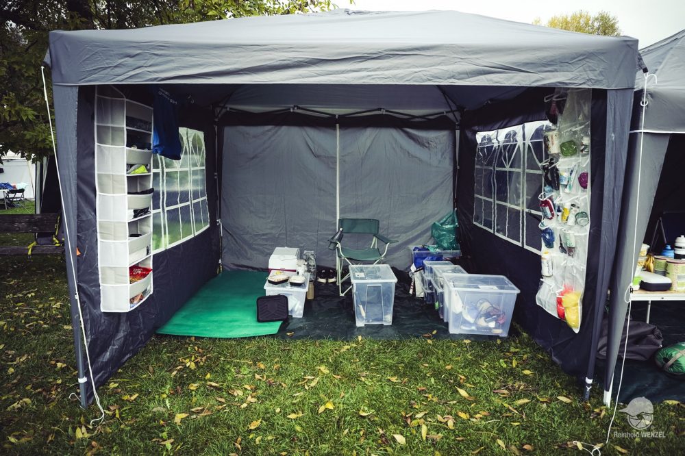 Nach der Startnummernabholung wird ein Foto für die Teilnehmerwand gemacht. Wer aufhört entfernt sein Foto. So sieht man jederzeit, wer noch im Rennen ist. Als ich knapp eine Stunde vor dem Start am Wettkampfgelände eintreffe, wird mir schnell klar, dass ich mit nur einen Rucksack für Gels, Riegeln und Wechselkleidung verhältnismäßig schlecht ausgestattet bin. Andere haben Zelt, Kochplatte, Masseur und Physio dabei.