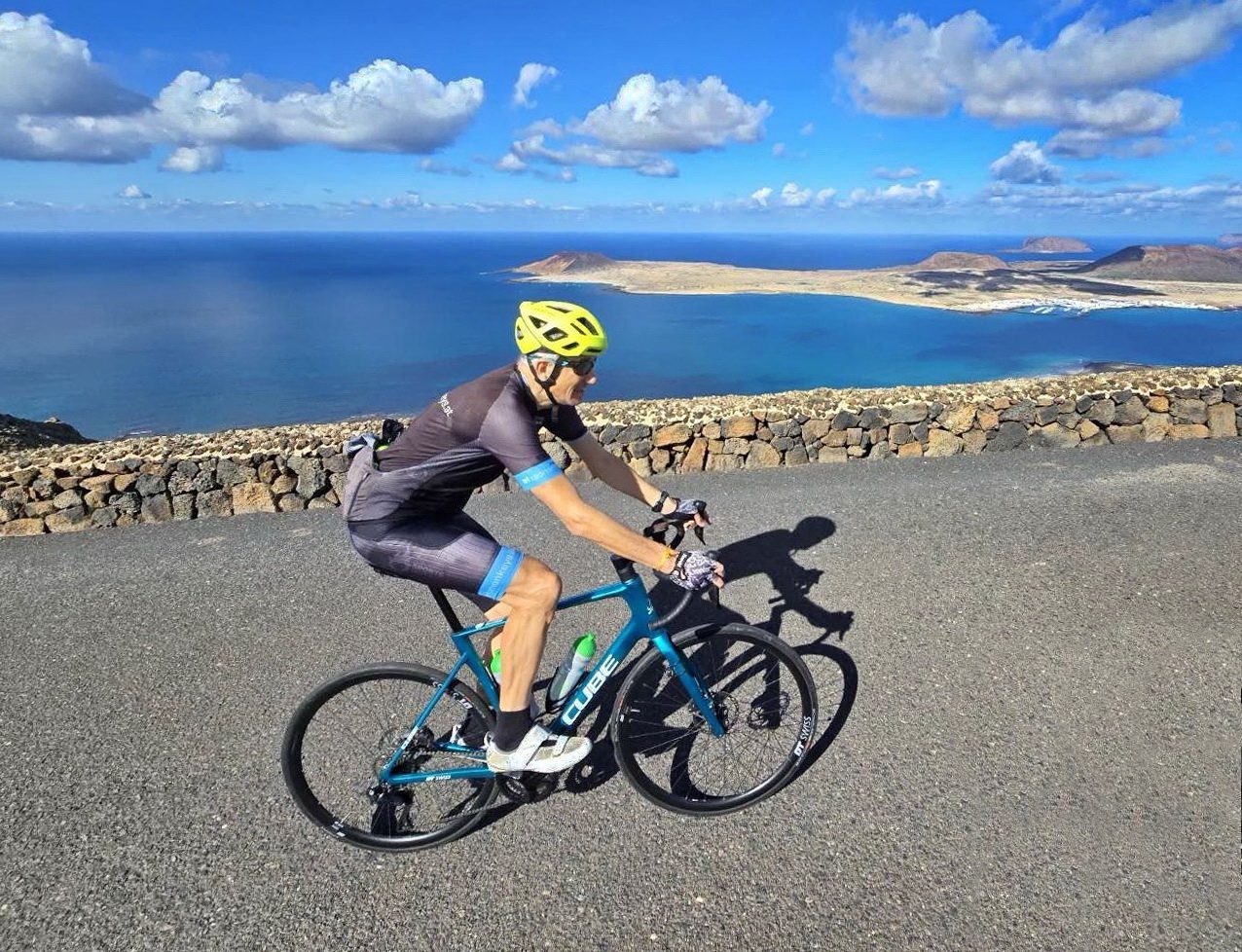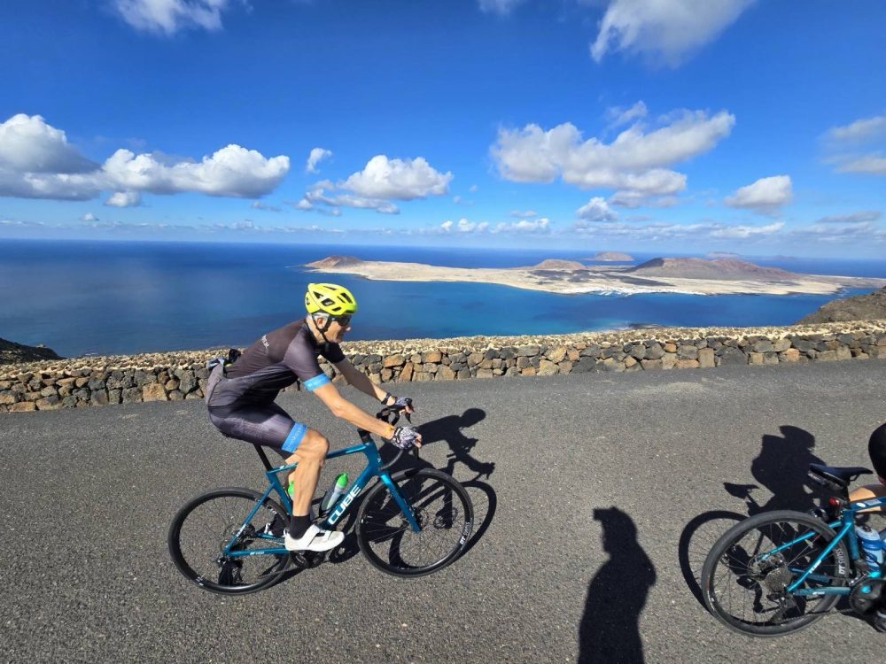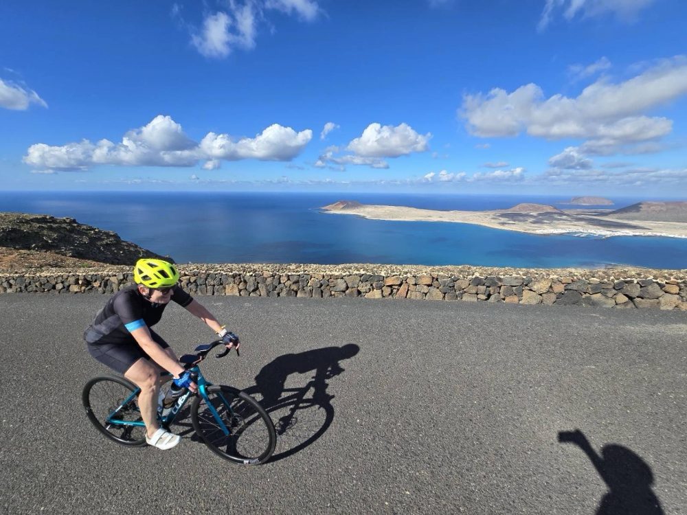 Wetterkonditionen: konstant zwischen 18 und 19 Grad bei meist wolkenlosem oder nur leicht bewölktem Himmel. Dass gleichzeitig aus Mitteleuropa ein brutaler Tiefwintereinbruch gemeldet wurde, ließ bei uns keine Schadenfreude aufkommen (ein Gefühl, das einem Monkey grundsätzlich fremd ist), aber eine gewisse Erleichterung, dass wir das „richtige“ Zeitfenster erwischt haben, durften wir doch konstatieren. Allerdings ist es auf Lanzarote beständig windig, und ganz speziell an den ersten beiden Tagen konnten wir es durchaus stürmisch nennen, was bei Rückenwind sehr nett gewesen wäre. Stattdessen machte uns oft böiger Seitenwind zu schaffen, und meist dann, wenn wir ihn gar nicht brauchen konnten. Speziell bei Auf- und Abfahrt zum bzw. vom „Castle of Pirates“, eine etwa 1,5 km lange, seeehr ausgesetzte Strecke, die mich beim Runterfahren veranlasste, aus den Pedalen zu klicken – für alle Fälle (wortwörtlich)… Aber gut gegangen, wie überhaupt der ganze Aufenthalt unfall-/sturzfrei verlief. Einige Tage später, als die Windstärke nachgelassen hatte, ging’s auch eingeklickt vom Piratencastle talwärts.